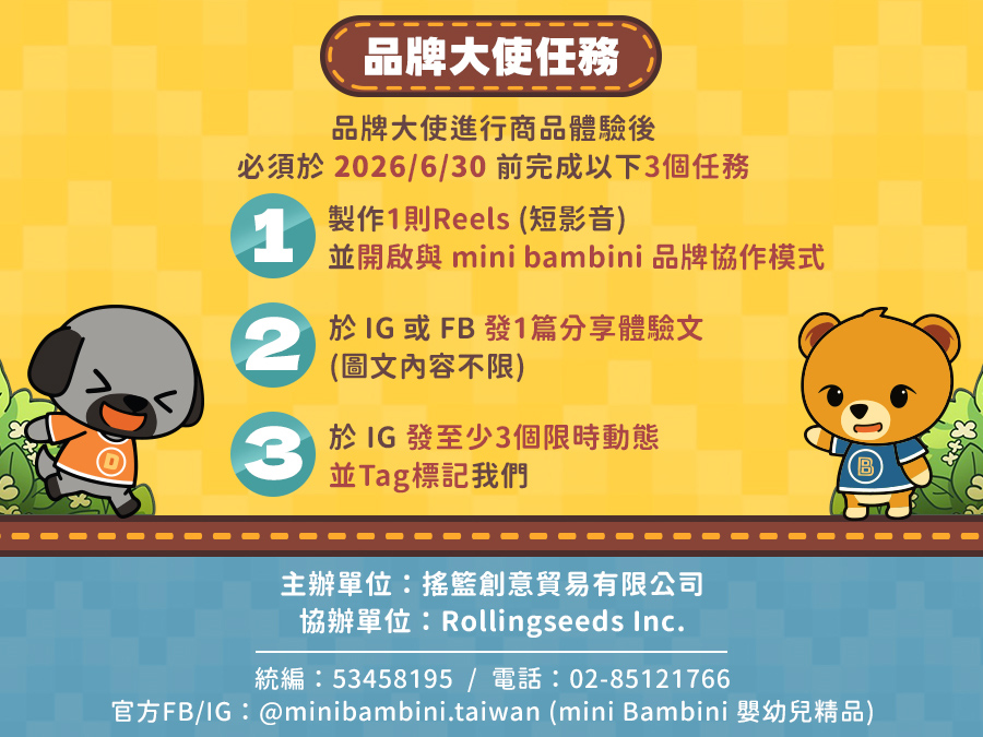搖籃創意貿易有限公司 mini bambini客服部門人員不會於『非上班時間』以電話或簡訊與您聯繫訂單或修改訂單事宜,若您接到不明來電或簡訊請您留意。如果您還是不放心,請在上班時間以FB私訊 (www.facebook.com/minibambini.taiwan) 或電話 (02-85121766) 聯絡我們,我們將盡速為您服務。