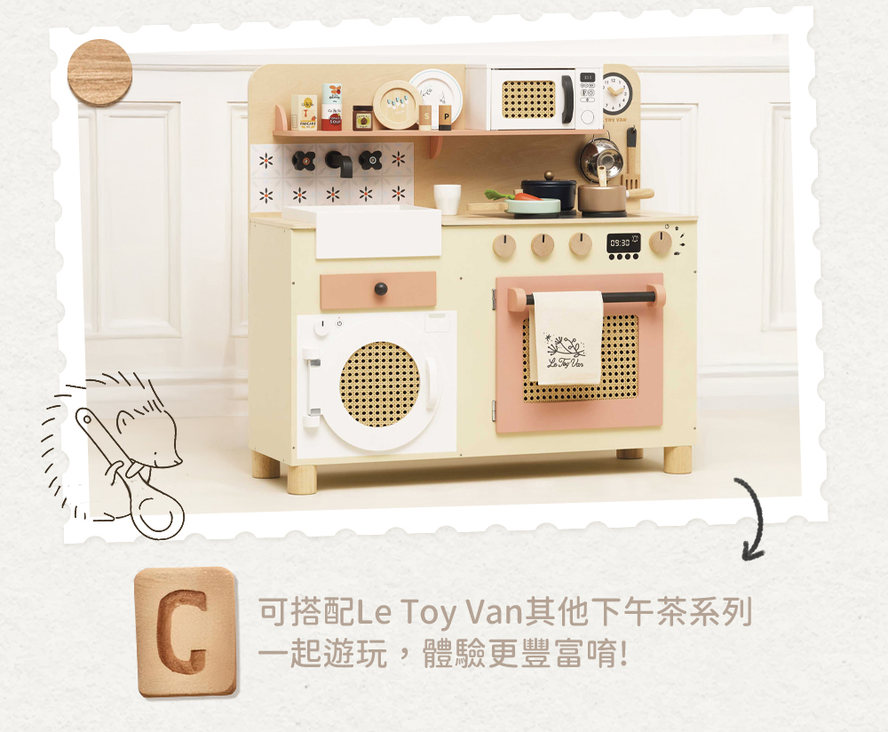 英國 Le Toy Van 的 Honeybake 角色扮演系列是專為幼兒所設計的多層次探索學習玩具。透過不插電最傳統的方式,搭配最現代的生活主題,做為小朋友體驗生活的教具。我們的角色扮演系列玩具榮獲全球無數的玩具大獎,強調寓教於樂、互動學習、自我表達、培養社交與溝通能力、啟發創意及想像力等重要元素